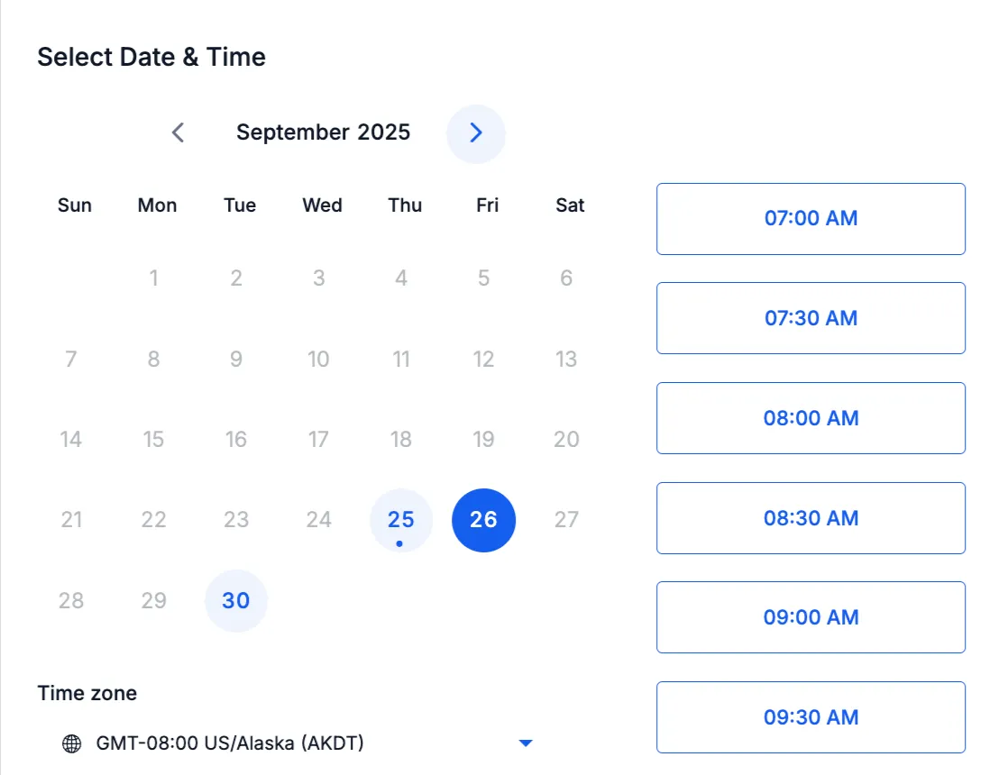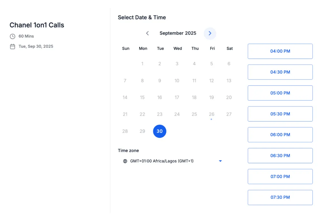 Real-time online calendar that shows your availability instantly