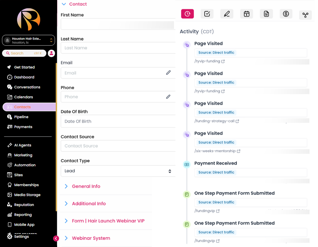 All funnels connect directly to your CRM, booking, and email tools